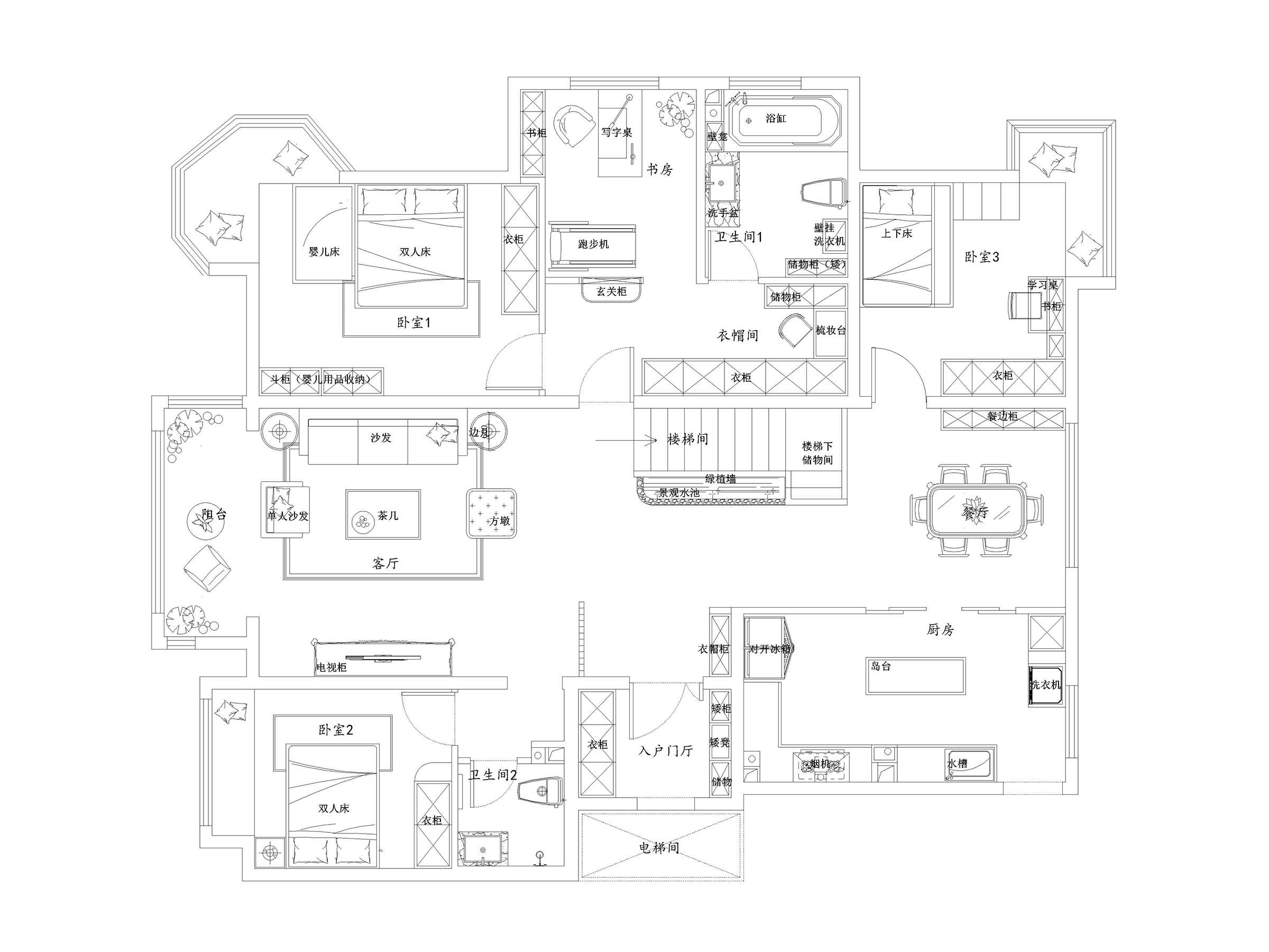 明亮輕快的色調,配以金屬裝飾線條,體現輕奢味道。