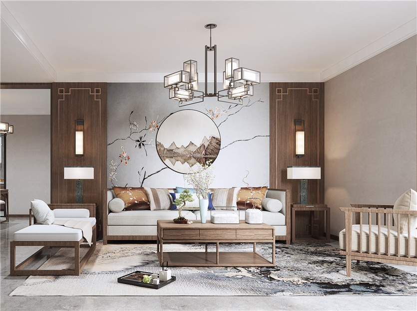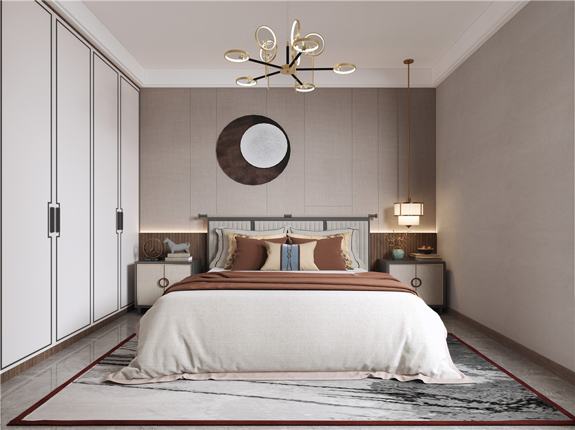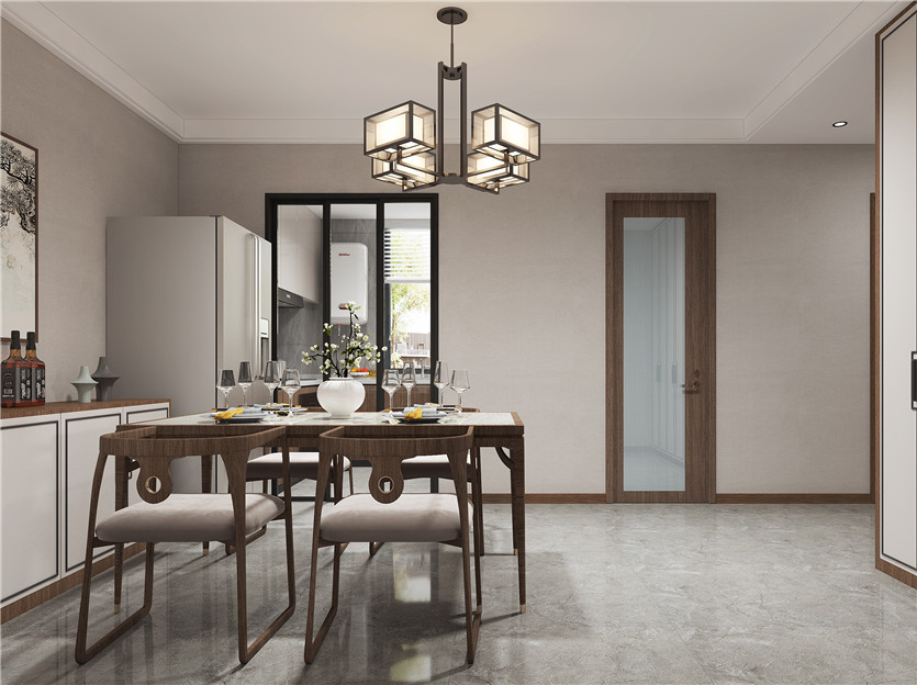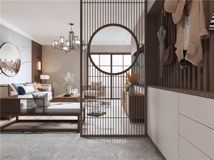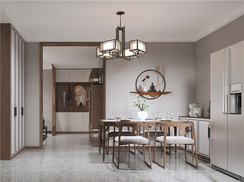 將中式元素與現(xiàn)代元素巧妙融合,給人沉穩(wěn)寧?kù)o的感覺(jué)。空間布局簡(jiǎn)潔,入戶玄關(guān)既是虛墻也是借景,令人眼前一亮。整體設(shè)計(jì)無(wú)過(guò)多復(fù)雜造型,大面積留白與干凈利落的線條,營(yíng)造出禪意的靜謐氛圍。