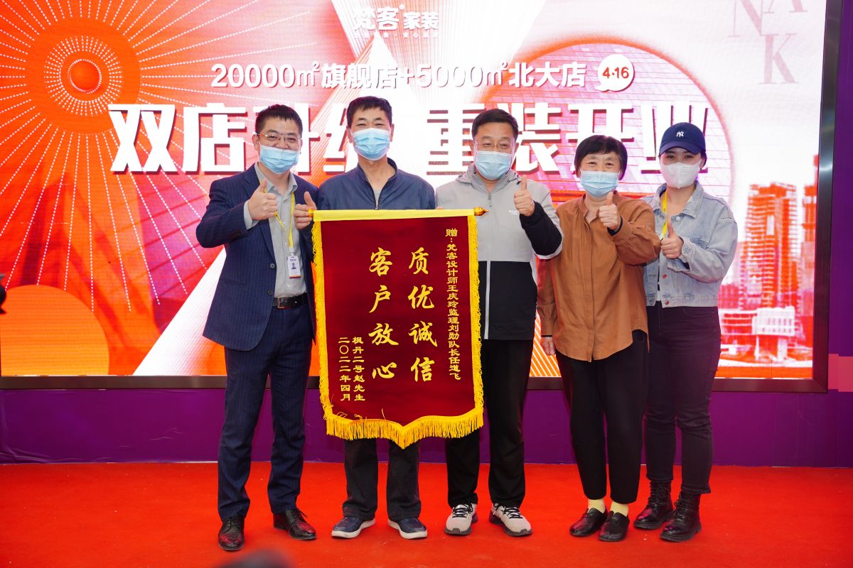 “裝修的新家細致完美,錦旗一個送梵客,一個送工長,代表家裝服務有保障,工地施工有保障。”