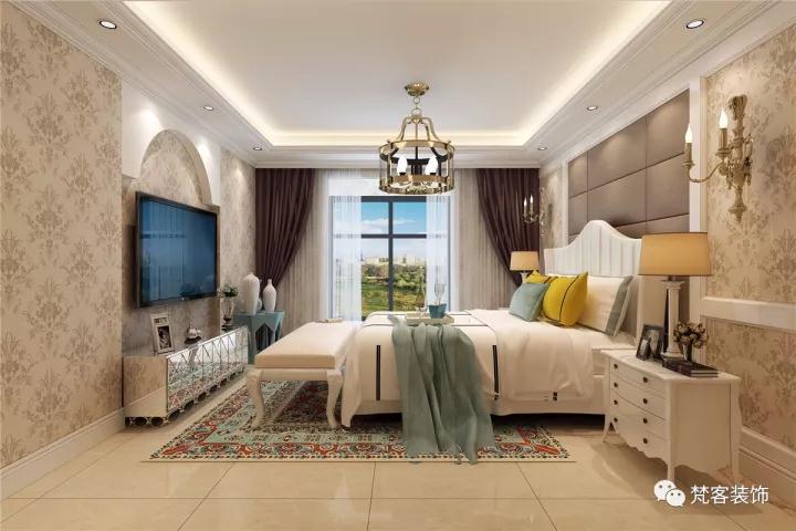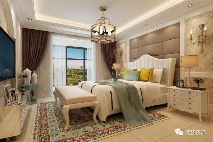 臥室鋪設(shè)地毯,但地毯和地面色差不宜太大,選擇大面積的歐式花紋地毯,主要是裝飾地面,提升舒適性。