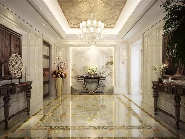 簡歐風(fēng)格很注意材質(zhì)的運用,本案例中,大量運用了石膏線, 瓷磚,墻紙,軟包,地毯,體現(xiàn)了整個空間的精致高貴。