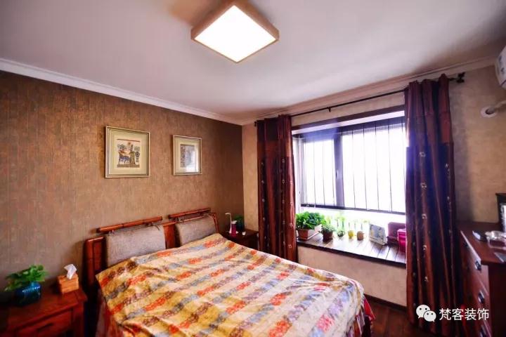 和客廳相比,臥室更顯溫馨寧謐,溫潤(rùn)的色調(diào)讓這個(gè)空間充滿安寧。簡(jiǎn)約復(fù)古的家具,防腐木飾面的飄窗,都給主人帶來(lái)家的祥和。